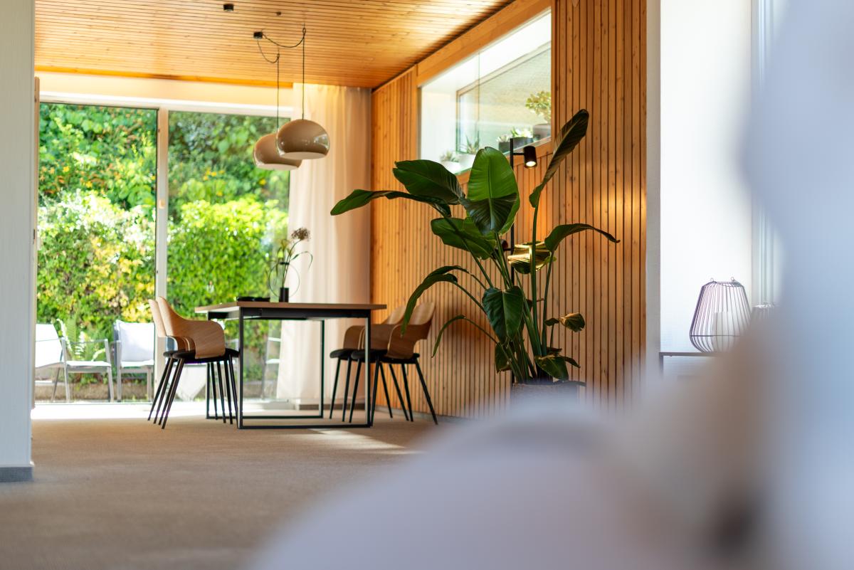 Optimierung der Raumatmosphäre: Neutrale und zugleich stilvolle Einrichtung, klare Linienführung und gezielte Farbakzente.